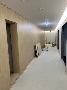 テナントビル共用廊下 壁紙ハードクロス木目仕上げ 梅田